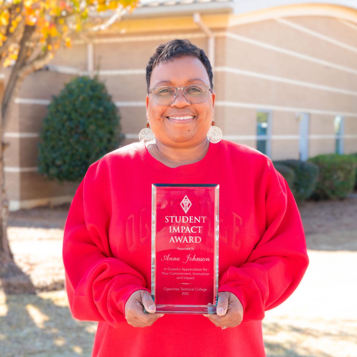 Ogeechee Technical College is proud to recognize Anne Johnson, Student Success Coach, as the college’s first-ever recipient of the Student Impact Award. Presented annually by the Technical College System of Georgia, this award honors one staff member from each institution who demonstrates exceptional commitment to student-centered service, innovation, and measurable impact.
