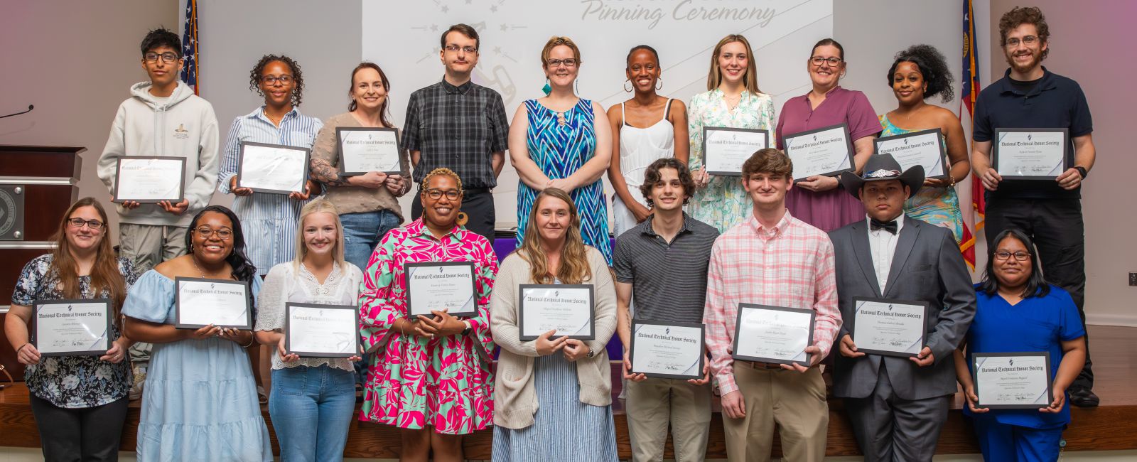 The National Technical Honor Society at Ogeechee Technical College (OTC) recently hosted its annual induction ceremony in the Joseph E. Kennedy auditorium at the College. 42 new members who achieved and maintained at least a 3.25 grade point average, and who received recommendations from their instructors, were inducted into the organization and received their official NTHS portfolios.