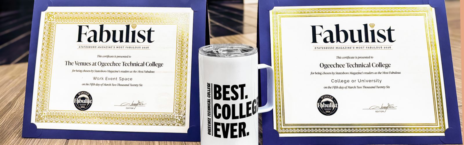 Ogeechee Technical College (OTC) has been named "Most Fabulous College" for the 2nd year in a row in the latest edition of Statesboro Magazine and, for the third consecutive year, "Most Fabulous Local Work Event Space."