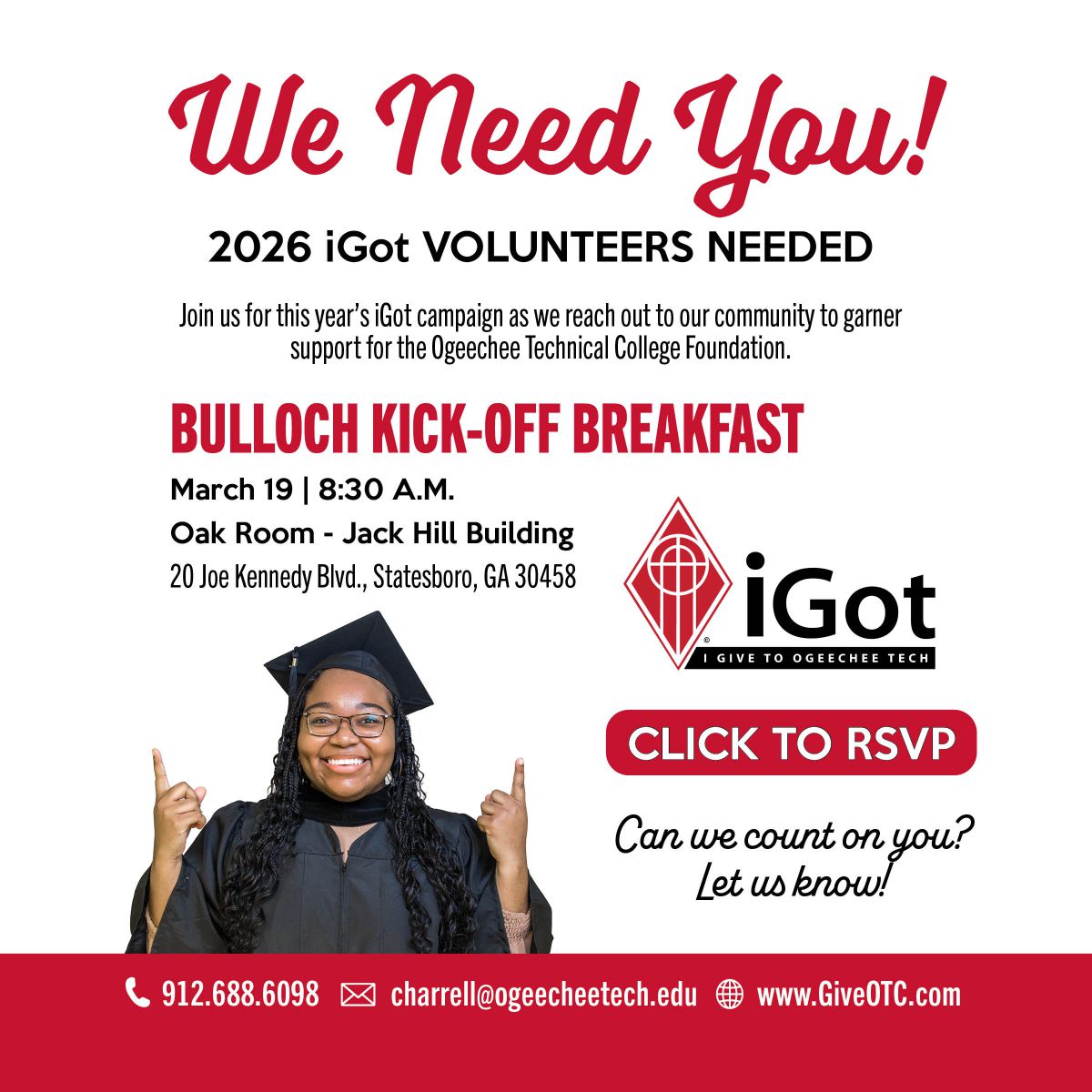 Ogeechee Tech students are taking the next step towards fulfilling a dream for a better job, a promotion, or a better life. Your investment in Ogeechee Tech helps Power the Purpose for students who are driven, determined and have an unstoppable work ethic. Your donations are not only critical to student success, but serve Bulloch, Evans, and Screven Counties and will help build a foundation for a higher quality of life for all citizens in our region.