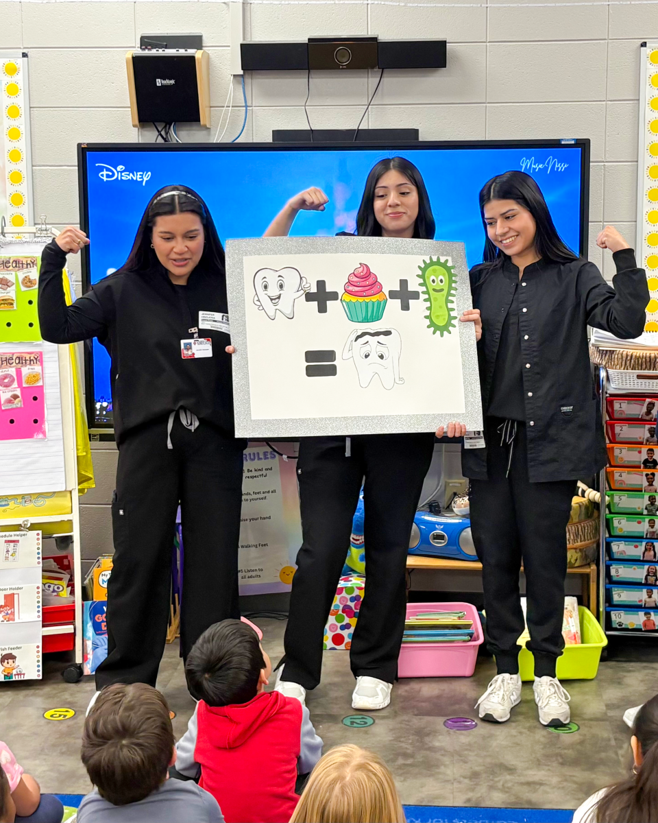 Each group of Dental Assisting students was responsible for creating its own presentation and educating students about oral health and nutrition. They played games and talked about “sugar bugs” (bacterial plaque), proper brushing habits, flossing, their first trip to the dentists, and which snacks are good or not-so-good.