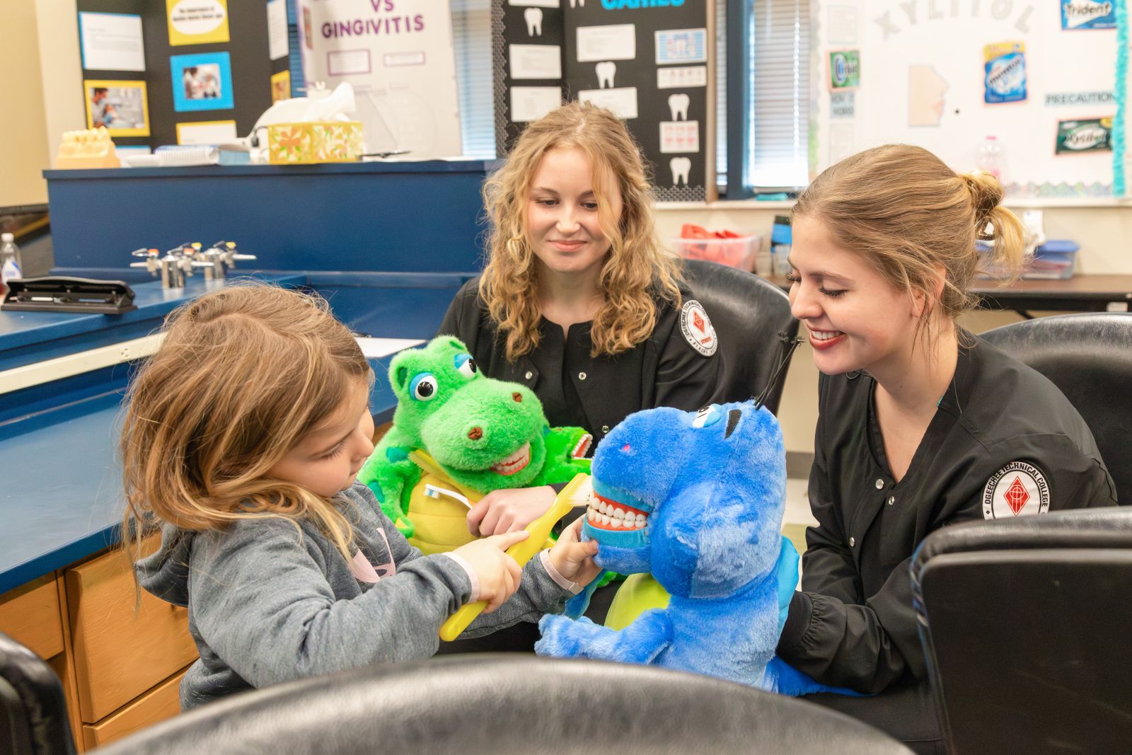 In the Dental Assisting program, OTC students shared lessons about dental hygiene, including the importance of proper brushing and flossing. The Pre-K students learned about “germ bugs” and had the opportunity to sit in a dental chair and see dental equipment up close.